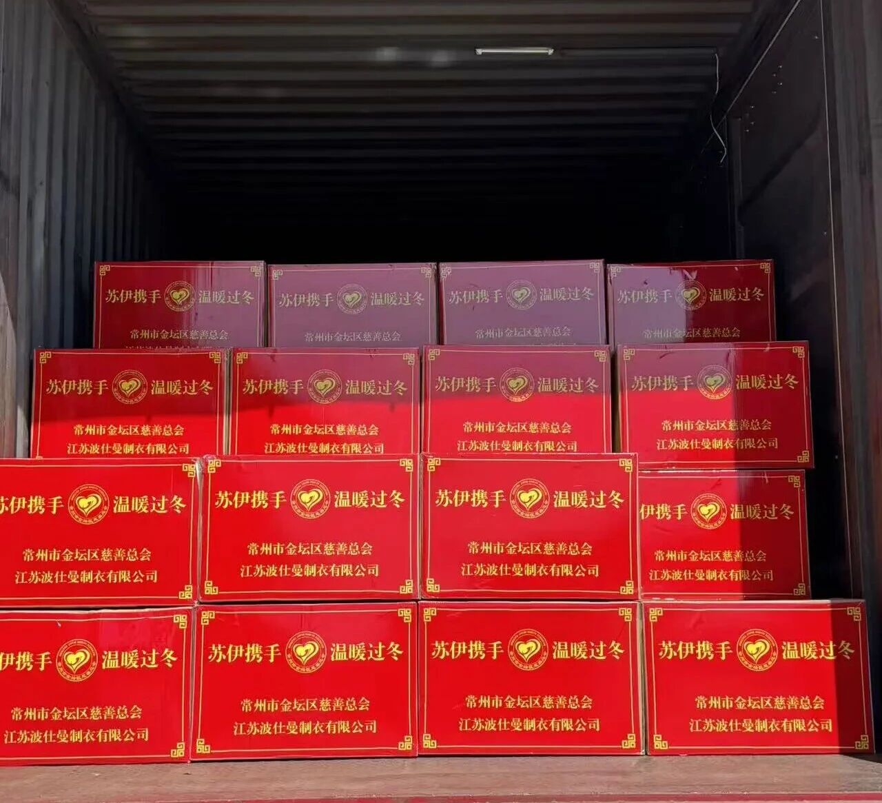 据了解,本次援疆项目金坛区慈善总会共捐赠了3000多件羽绒服,价值150多万元,其中江苏波仕曼制衣有限公司捐赠了2000件。未来,金坛区慈善总会将继续组织社会各界积极投身公益事业和对口协作,为促进区域协调发展、实现共同富裕贡献更多力量。