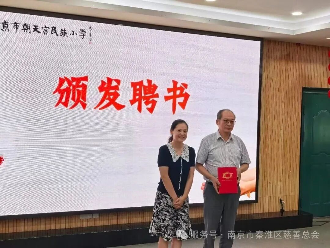 为了推动书法艺术的传承与发展,学校特聘请了管旭海先生担任学校“书法教育名誉顾问”。杨帆校长亲自为管旭海先生颁发了聘书,并期待他能引领更多的民族娃娃爱上书法,感受书法的魅力。同时,为了表达对秦淮区慈善总会的感谢,学校还精心准备了一面锦旗,由杨帆校长和学生代表共同赠送给慈善总会,场面温馨而感人。