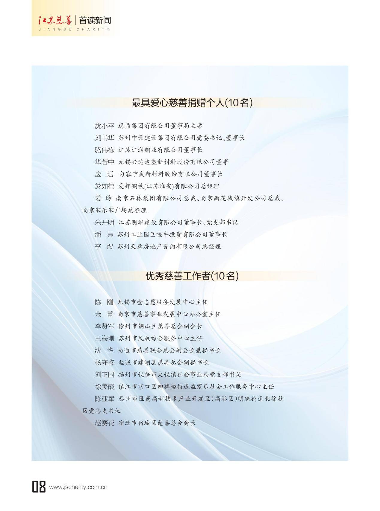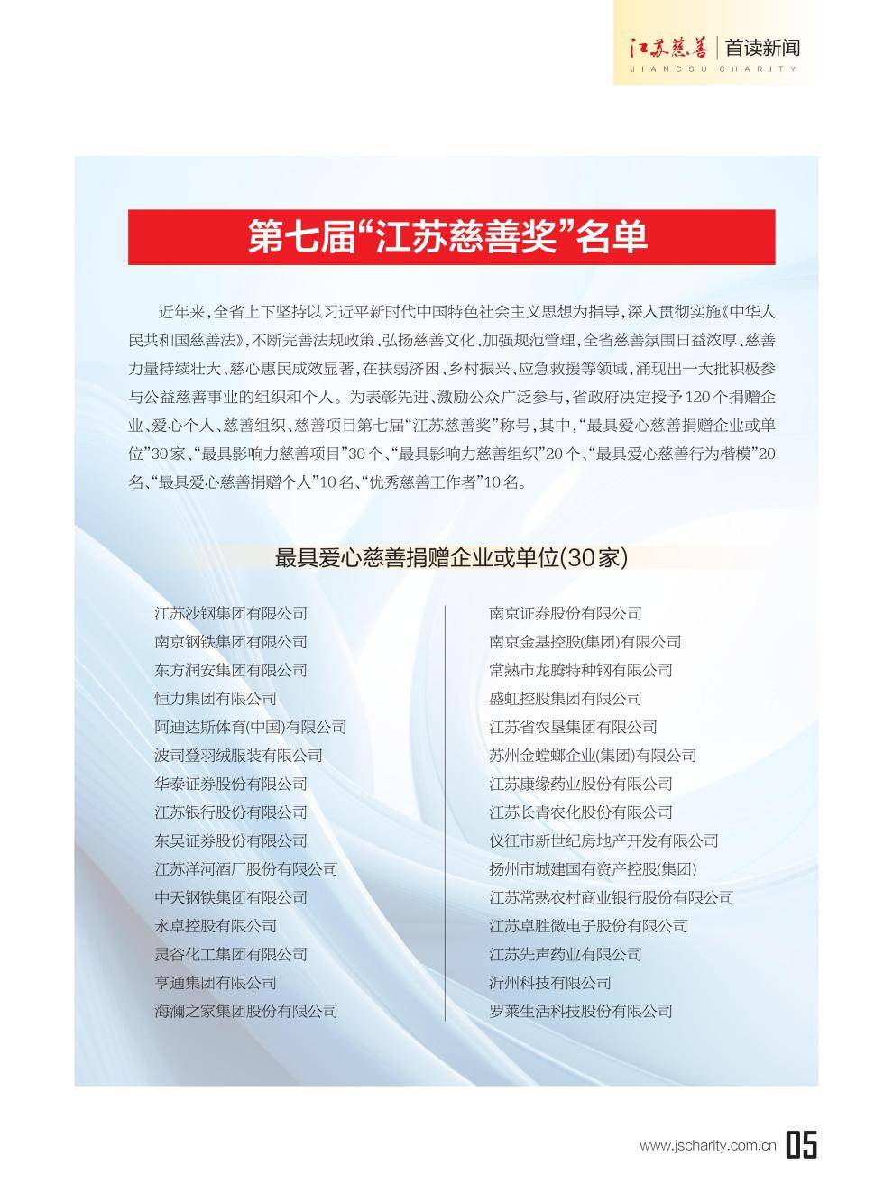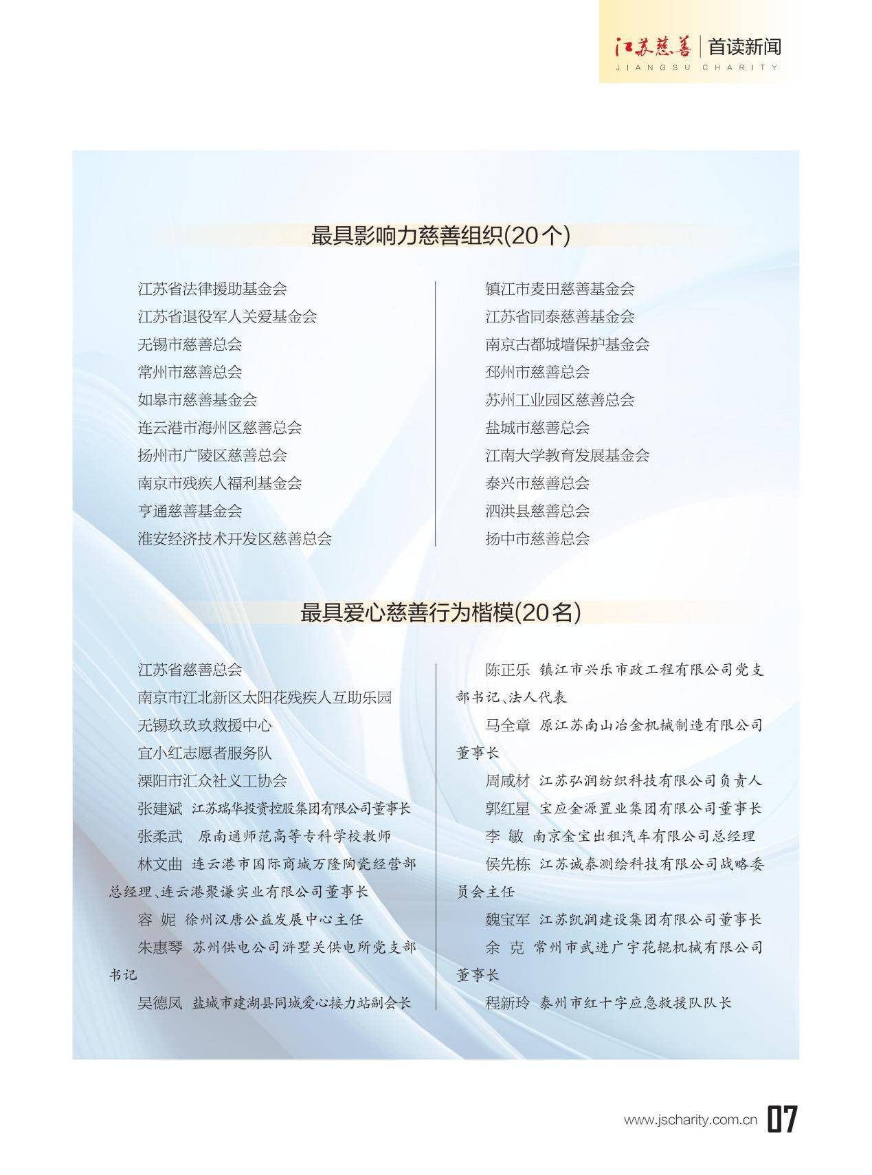 第七届“江苏慈善奖”名单