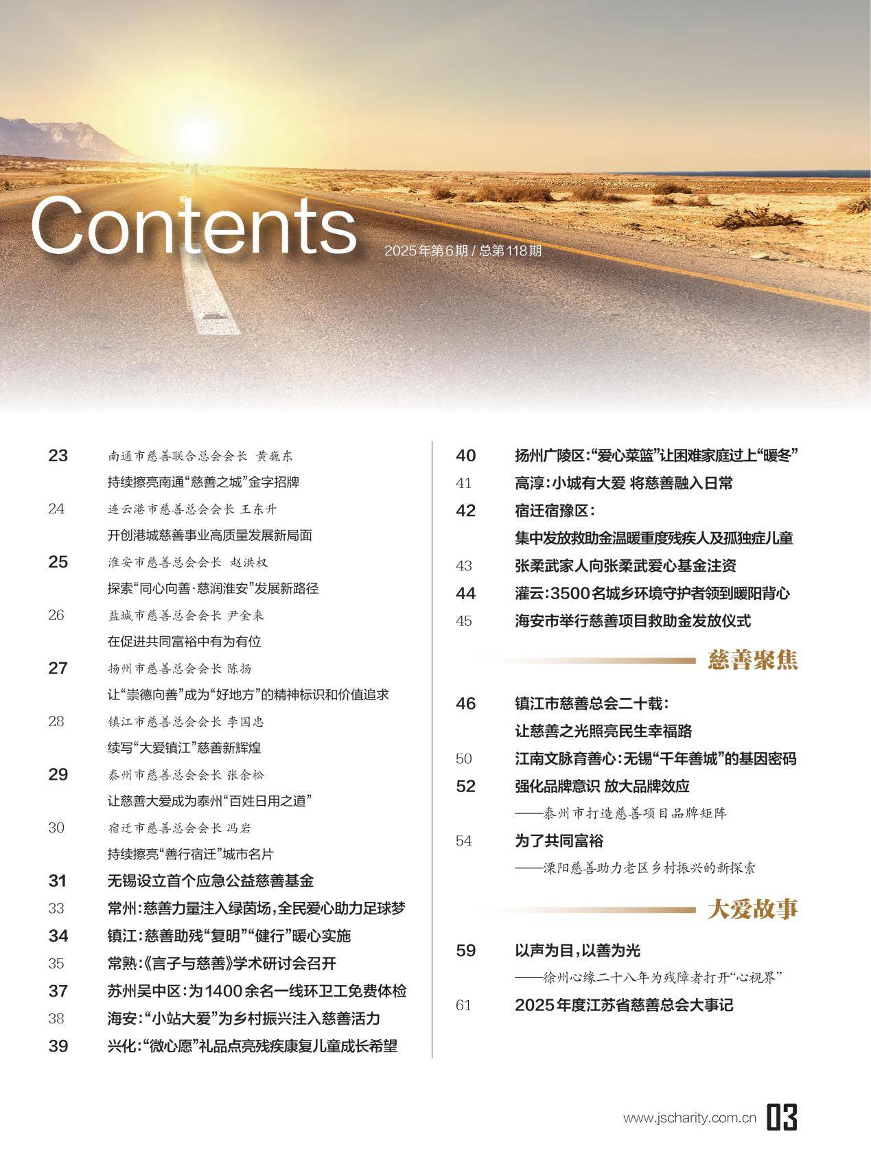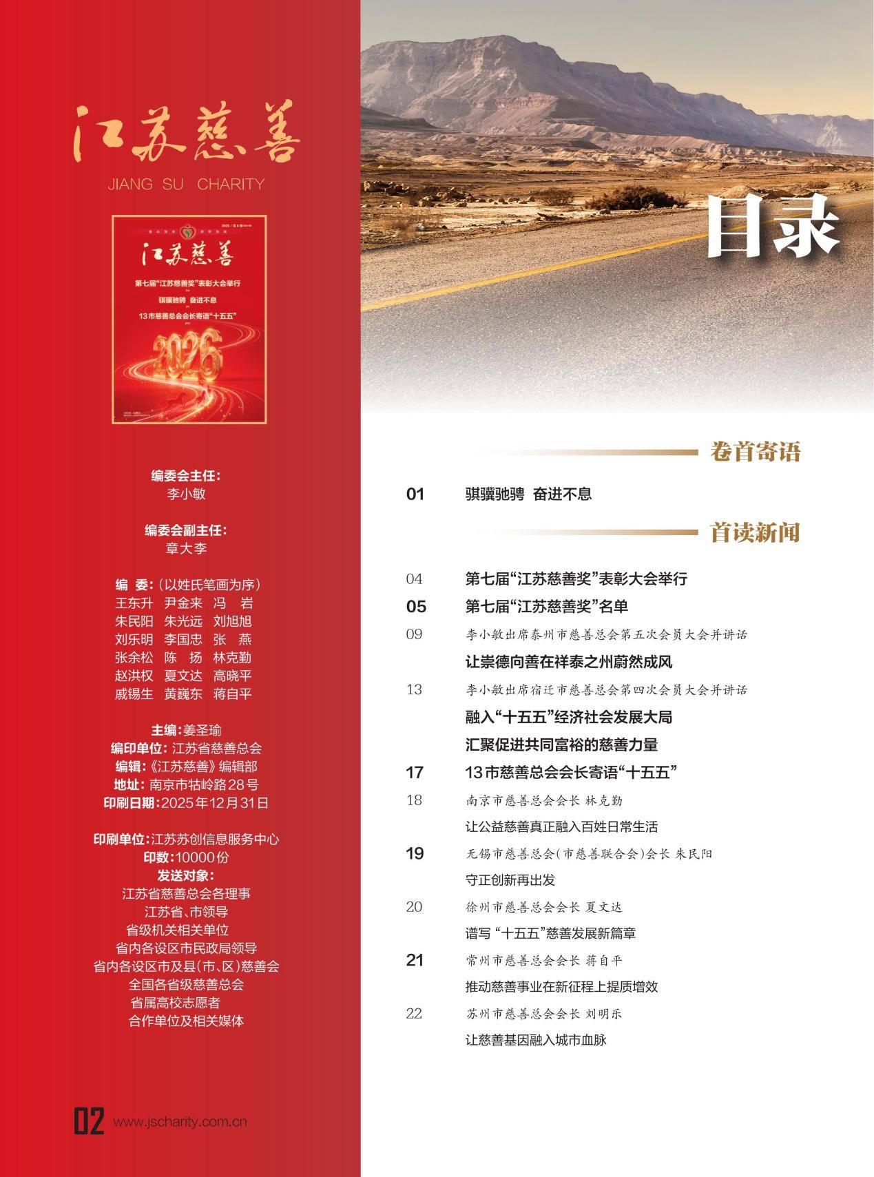 时光如流,岁序更迭。当本期《江苏慈善》杂志与大家见面时,我们已站在新一年的门槛上。