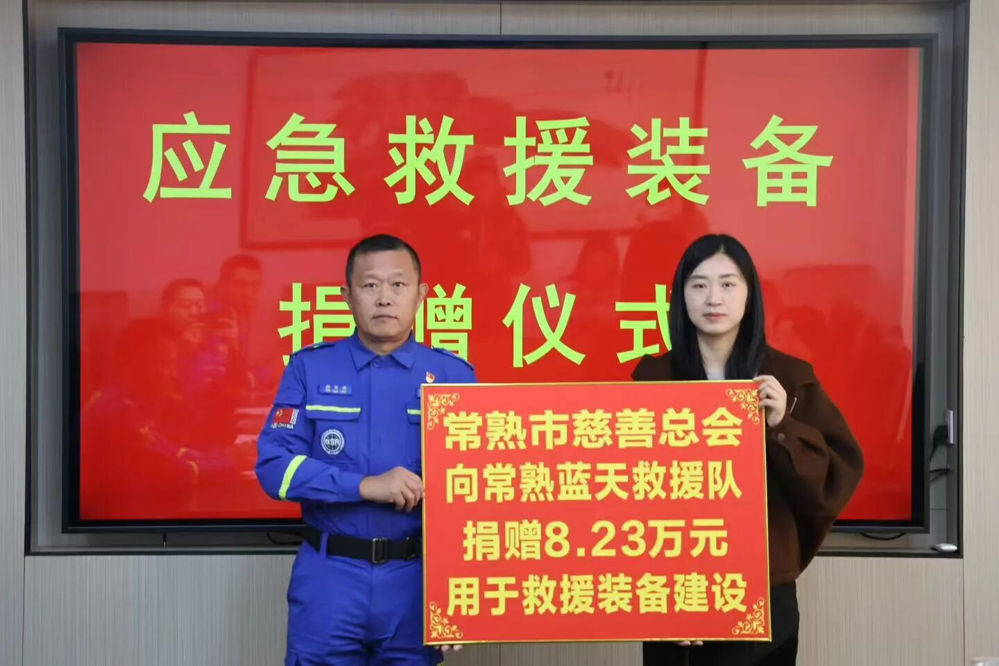 常熟市慈善总会对应急救援事业的支持从未间断。2023年2月,在常熟市蓝天救援队8名队员赴土耳其震区开展救援工作之际,常熟市慈善总会联合人保财险常熟中心支公司迅速行动,为队员捐赠每人保额50万元的意外险,涵盖意外伤亡伤残、医疗费用等多项保障,并向队员家属每户赠送3000元慈善慰问金,为出征勇士解除后顾之忧。更早之前的2022年7月,常熟市慈善总会向常熟市蓝天救援队捐赠了两辆价值7万元的冲锋舟,为水上救援增添助力。