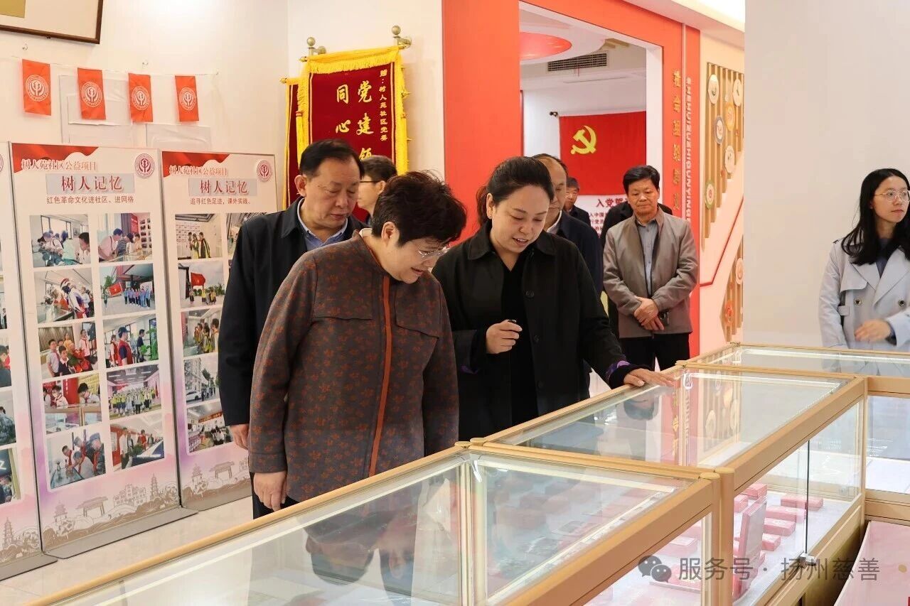 罗宁一行首先来到广陵区汶河街道树人苑社区,深入了解社区慈善工作情况,听取了社区党委书记、居委会主任、慈善工作站站长马莹在组织建设、慈善募捐、救助项目实施、志愿服务及基层治理等方面的情况介绍,参观了慈善工作站、离退休党支部活动室、家庭教育指导中心、慈善心理咨询室、树人记忆馆、社区慈善基金以及慈善文化等建设情况。考察中,罗宁与社区工作者亲切交流,对树人苑社区的慈善工作给予高度评价。她认为,该社区慈善工作精彩纷呈、可圈可点,坚持党建引领,深耕“首善树人”文化品牌,慈善工作站专业统筹运作,志愿者广泛参与,居民参捐率高达91.3%。社区创新实施的“五微”和“五步”工作法,精准帮扶困难群众,是社区慈善事业发展的典范。