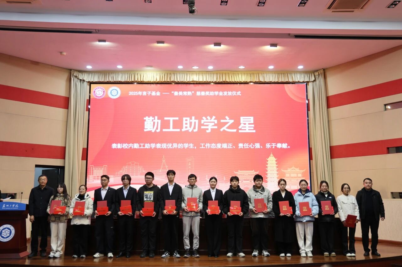 初冬时节,暖意融融。11月19日,2025年言子基金——“善美常熟”慈善奖助学金发放仪式在苏州工学院举办。