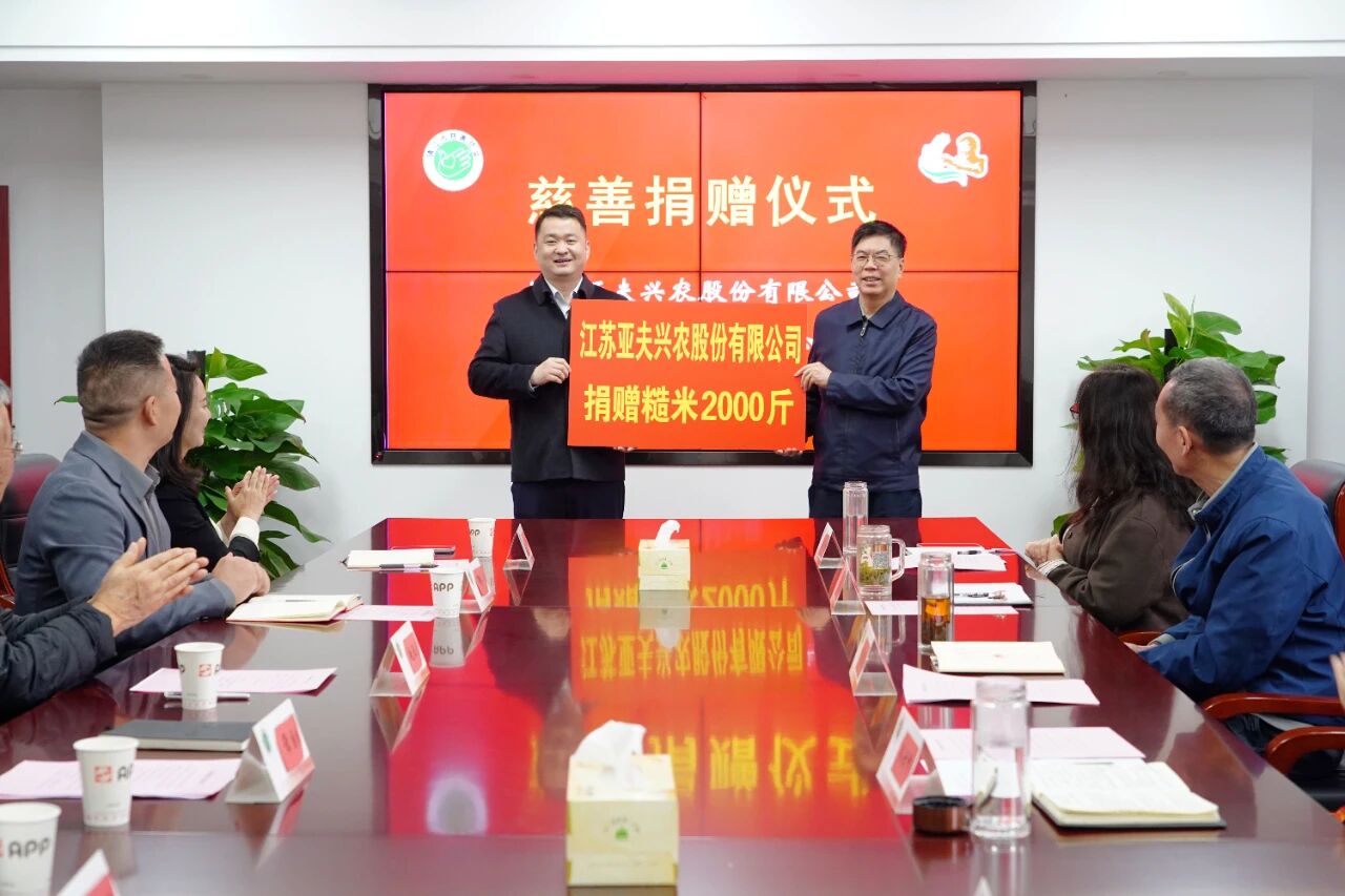 10月21日上午,镇江市慈善总会会议室内暖意融融,一场聚焦乡村振兴与教育赋能的定向捐赠仪式在此举行。江苏亚夫兴农股份有限公司(以下简称亚夫兴农)现场宣布,未来三年将向镇江市慈善总会认捐100万元,用于公益事业发展;当日,首笔25万元捐赠款及500份越光发芽糙米同步交付,善款与物资将精准落地,为弘扬亚夫精神、推进乡村文明建设、培育青少年劳动素养注入动能,以企业担当书写公益答卷。